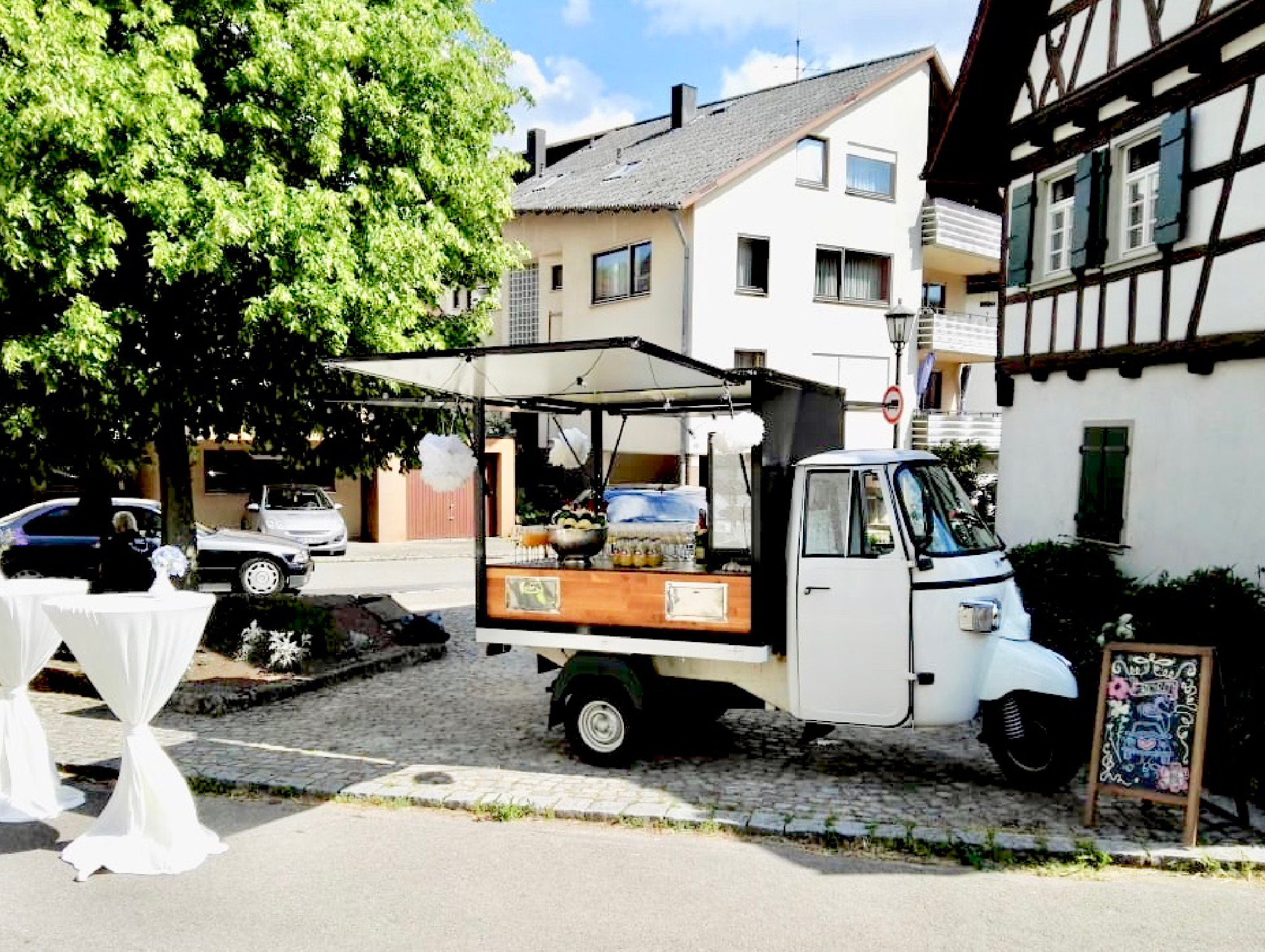 Individuell vervollständigen wir Ihr Ambiente mit unserem italienischen Kabinenroller, der Piaggio Ape! Wir sind ausgestattet mit einer professionellen Baristamaschine und natürlich darf auch unser charmanter Barista nicht fehlen, welchen Sie zu jeder Veranstaltung mit dazu bekommen. Möchten Sie, als stilvollen Auftakt, Ihr Fest mit einem Sektempfang beginnen, runden wir Ihnen diesen mit den unterschiedlichsten Qualitätsprodukten perfekt ab. Wir sind nahezu an jedem Standort einsatzbereit! Und sollte das Fest mal etwas kleiner oder größer sein, sind wir auch hierfür bestens mit unserer mobilen und stilvoll dekorierten Kaffee-/ oder Sektbar vorbereitet! Gerne zusammen mit einer unserer Piaggio Apen oder ganz unkompliziert einzeln buchbar.